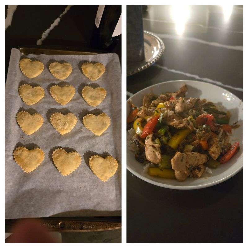 Heart shaped homemade ravioli (spinach & ricotta cheese) in a tomato sauce & caprese salad ($35)